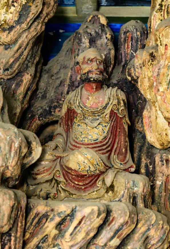 塑壁罗汉各有神情,有的在笑,有的在闭目,有的像看透众生,一尊尊并排坐着,沉默得让人肃然——世事翻覆,罗汉不语。